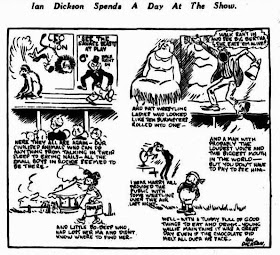 In the fifties and sixties Dickson contributed three or four panel gag strips for Eagle, Girl and Swift Annuals from Hulton Press. Dickson died 21st July 1987.