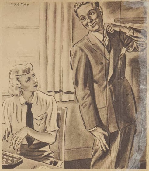 John Santry (1910-1990) featured in a previous post for his collaboration with Betty Roland during the 1940's on The Sydney Morning Herald daily strip The Conways. The following Santry Illustrations featured in The Australian Woman's Weekly during the early 1940's.